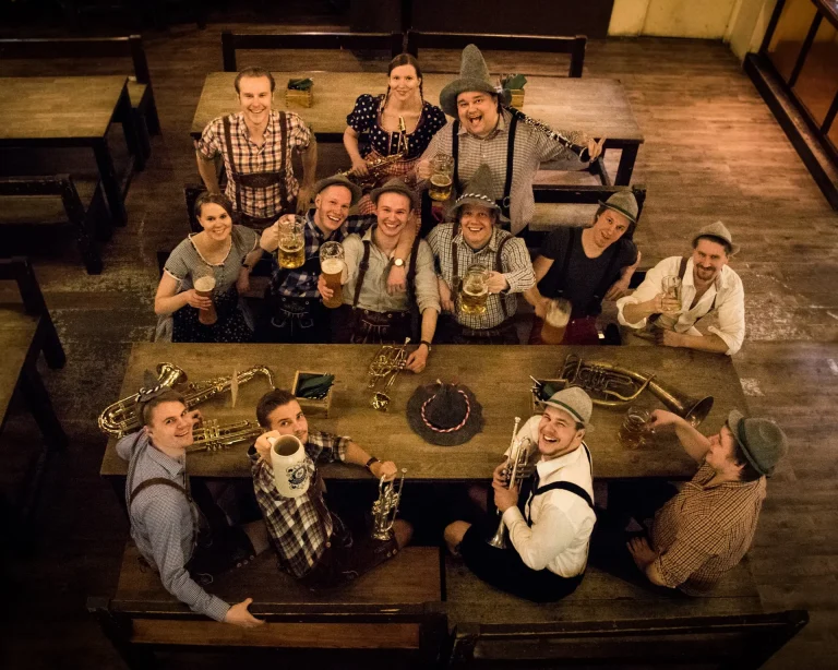 Sauerkraut7 tulee Tirolista, syvältä Alppien siimeksestä. Orkesteri kertoo esittävänsä railakkaan lystikästä ”Humba Täterä” -musiikkia, jossa kaikenlaiset torvet ovat pääosassa – soittimet eivät niinkään. Bändi vääntää nykyhittejä ja ikivihreitä biisejä saksantyylisiksi ja ryydittää kansan jos toisenkin juhlatunnelmaan. Orkesterin henkisenä johtajana voidaan pitää elektrohanuristi Horst-Helmut Guckmalia, joka on aikaisemmin johtanut mm. Hippo-hiihtoja ja sähköä.