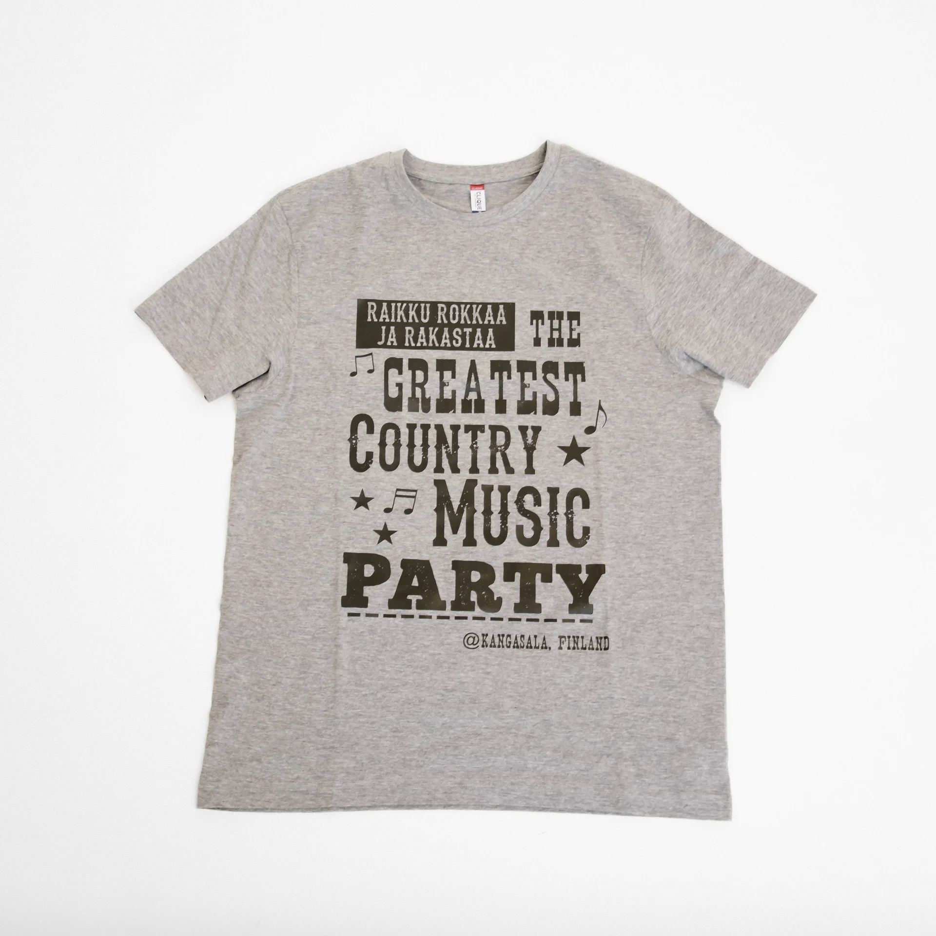 R3-festivaalin harmaa t-paita tuo esiin yhden tapahtuman tunnuslauseen: The Greatest Country Music Party. Näyttävä typografinen printti ja musiikkiteemaiset yksityiskohdat tekevät paidasta tunnistettavan osan festaritunnelmaa. Paita on valmistettu pehmeästä puuvillapainotteisesta materiaalista, joka tuntuu miellyttävältä päällä ja kestää hyvin käyttöä. Klassinen unisex-malli sopii monenlaiseen tyyliin ja käyttöön – festareille, vapaa-aikaan tai muistoksi Kangasalan Raikku Rokkaa ja Rakastaa -festivaalista. Tekstiilillä on OEKO-TEX® Standard 100 -sertifikaatti, mikä tarkoittaa, että materiaali on testattu haitallisten aineiden varalta.